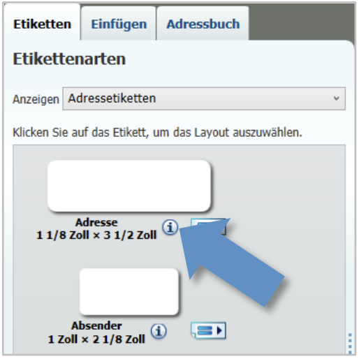 Wählen Sie in der Registerkarte Etiketten das Etikettenlayout (Art und Größe), das Sie in Ihrem DYMO LabelWriter verwenden. Wählen Sie eine „leere“ Variante von diesem Etikettenlayout.