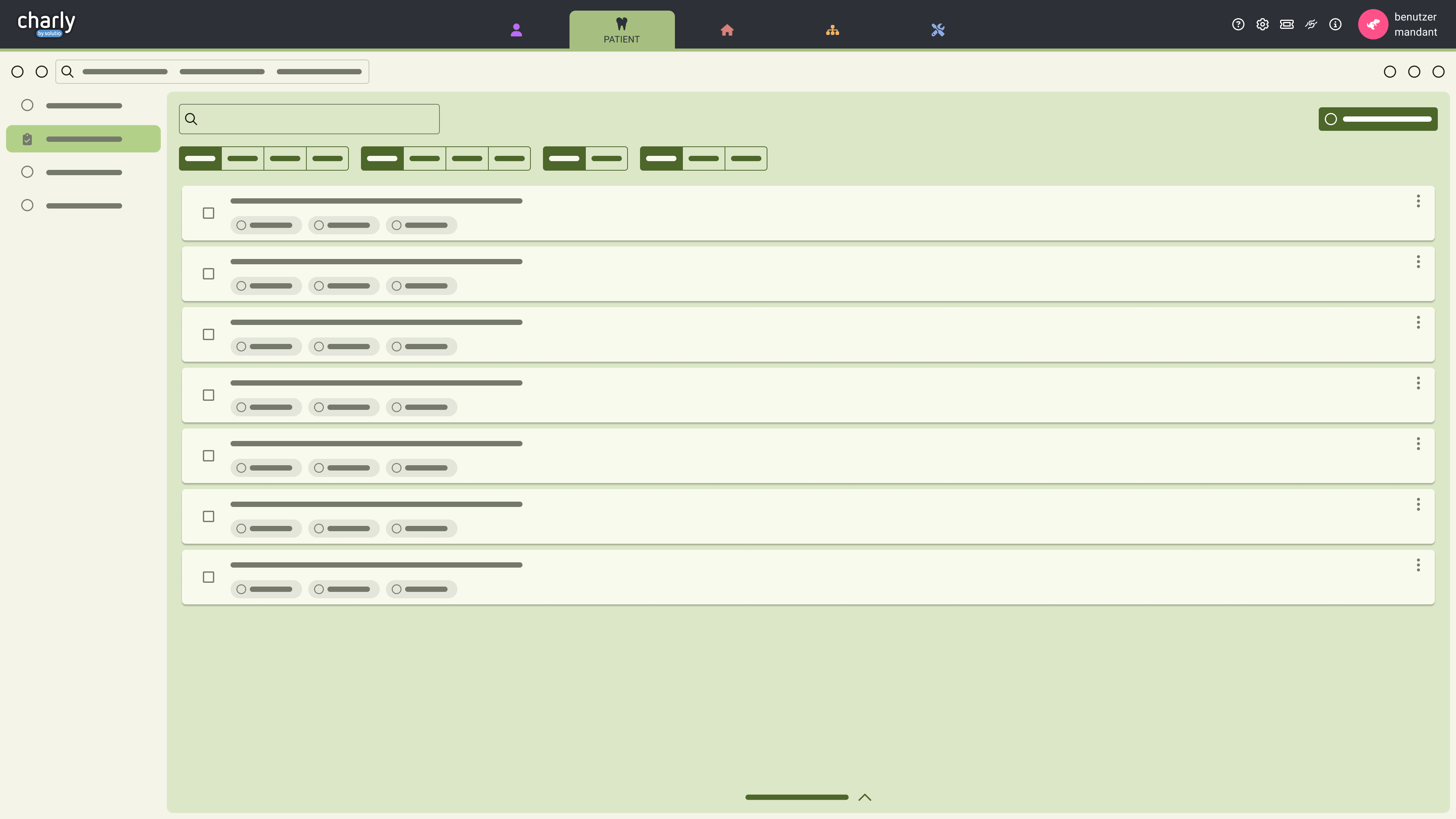 Die Aufgaben in Patient sind in zwei Bereiche unterteilt: