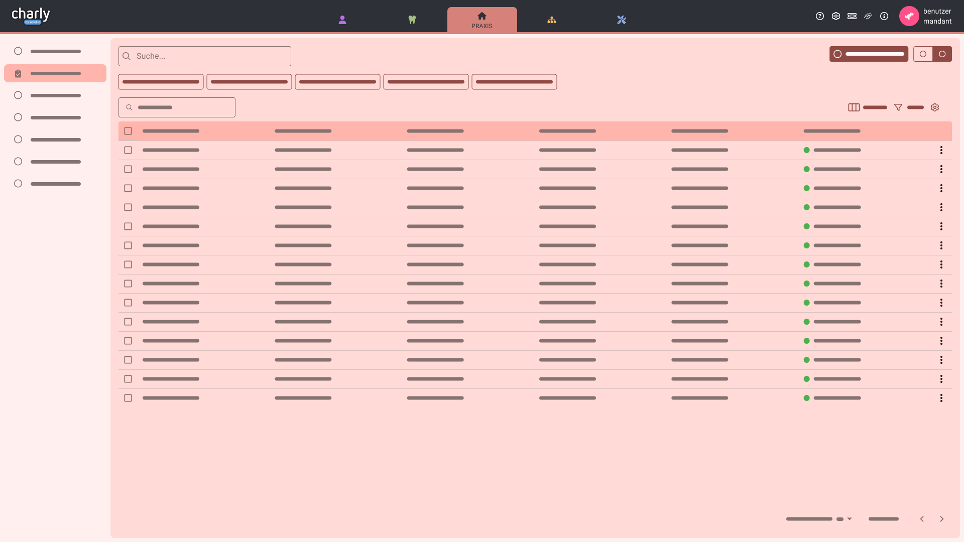 Das Suchfeld ermöglicht, nach spezifischen Informationen in der Tabelle zu suchen. Dabei werden alle Spalten der Tabelle berücksichtigt, um die gewünschten Inhalte zu finden.